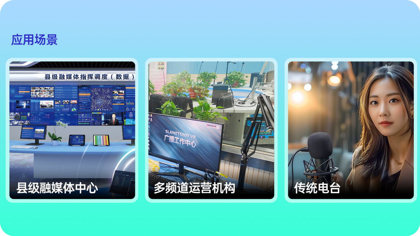 县级融媒体中心:低成本快速搭建多频道广播系统,降低技术门槛与投入成本。